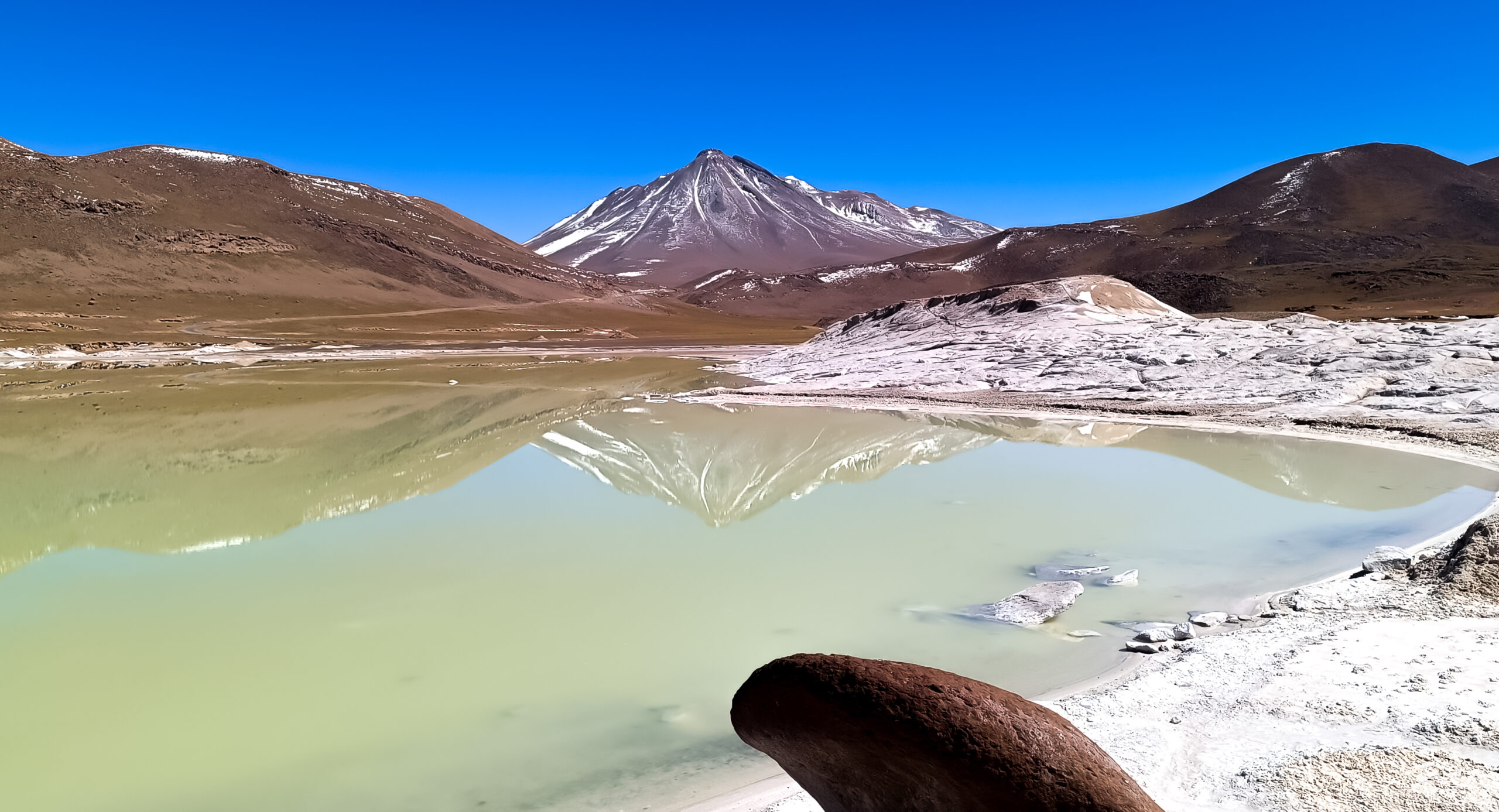 Llegaremos al Salar de Aguas Calientes (Piedras Rojas) donde haremos un trekking de 1 hora aproximadamente, aquí encontraremos sacaremos fotos clásicas